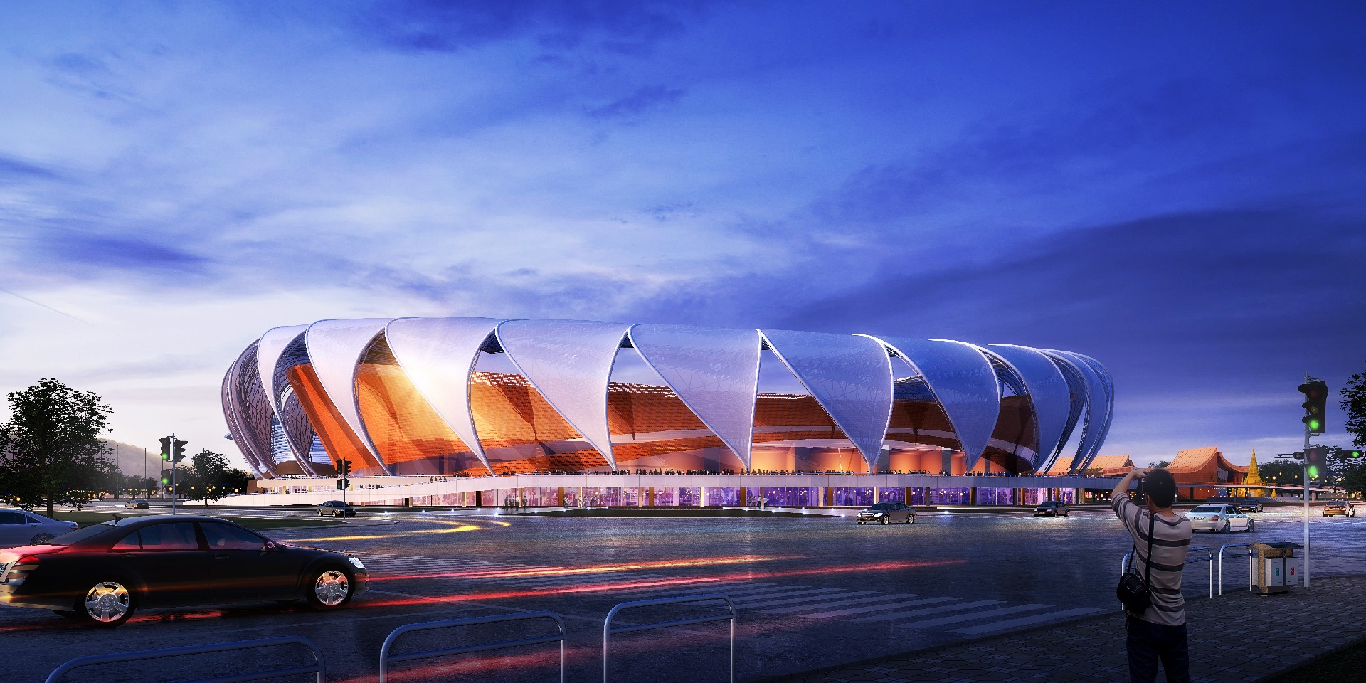 瑞麗國際文體中心建設(shè)項(xiàng)目體育場屋面膜結(jié)構(gòu)工程位于云南省瑞麗市,該項(xiàng)目PTFE膜展開面積約36000平米。