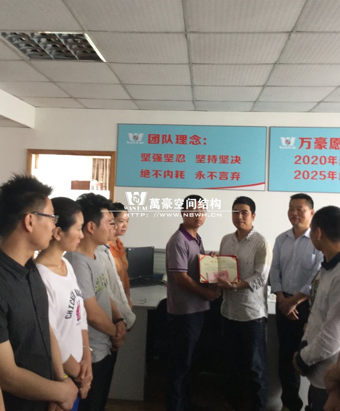 為了提高員工工作積極性,表彰先進(jìn),樹立典型,鼓勵(lì)更多的員工在工作崗位成長成才,在晨會(huì)上對設(shè)計(jì)部陳斌進(jìn)行了獎(jiǎng)勵(lì),設(shè)計(jì)部經(jīng)理為其頒發(fā)了榮譽(yù)證書和獎(jiǎng)金,同時(shí)希望其他員工向優(yōu)秀員工學(xué)習(xí),努力在工作中不斷創(chuàng)新,積極進(jìn)取,為公司的發(fā)展貢獻(xiàn)自己的力量。