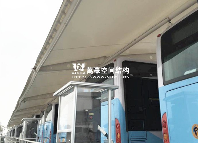 膜結(jié)構(gòu)雨棚施工面積約5138平方;用鋼量約80噸。施工難點在于工期緊。施工時天氣情況差,連續(xù)的陰雨天給鋼構(gòu)的油漆施工帶來了極大的麻煩并且延誤了工期。雨棚底下還要安裝充電樁,我們還要和充電樁施工班組進(jìn)行技術(shù)對接,規(guī)劃充電樁的安裝位置。由于工期緊,天氣狀況差,我們動用了兩個施工班組加班加點,土建、鋼構(gòu)交叉施工,最后如期完工。由于每個雨棚長度比較長,施工班組在立好鋼構(gòu)件之后從中間開始往兩邊安裝膜布,使工作效率有了很大的提高。
