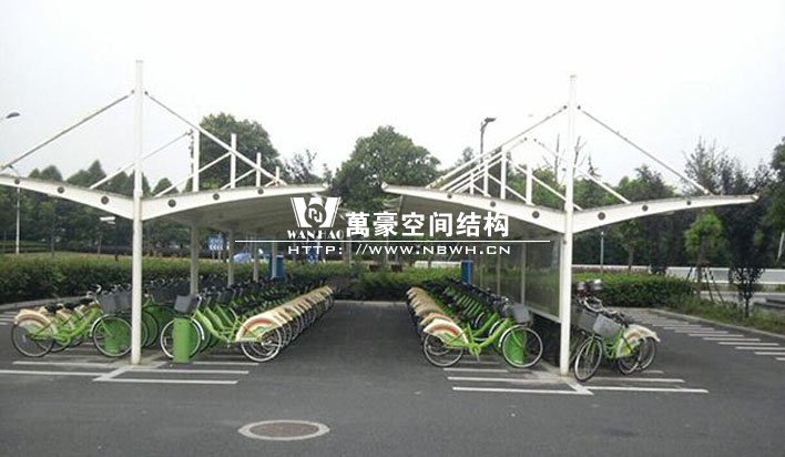 膜結構自行車棚具有遮陽、擋雨、實用、美觀的作用。