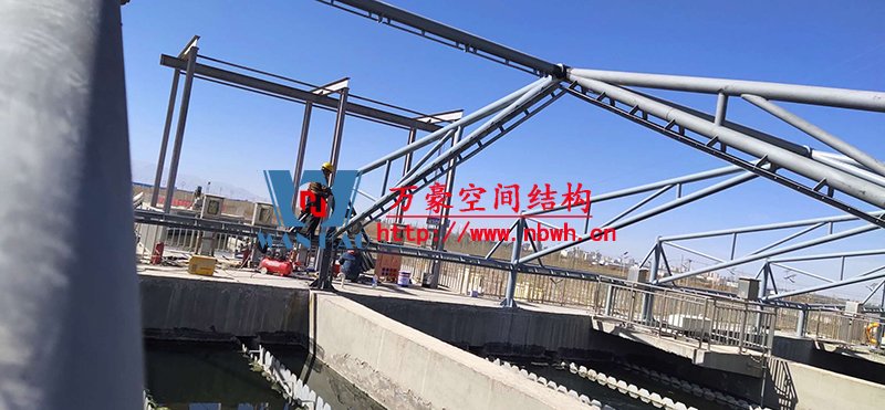 該工程主要建設(shè)格爾木工業(yè)園昆侖工業(yè)區(qū)工業(yè)污水處理廠首期2.5萬立方米/天工程二沉池、水解酸化池和預沉池池體保溫膜結(jié)構(gòu)安裝。項目用鋼量230噸,膜結(jié)構(gòu)展開面積5000平米。